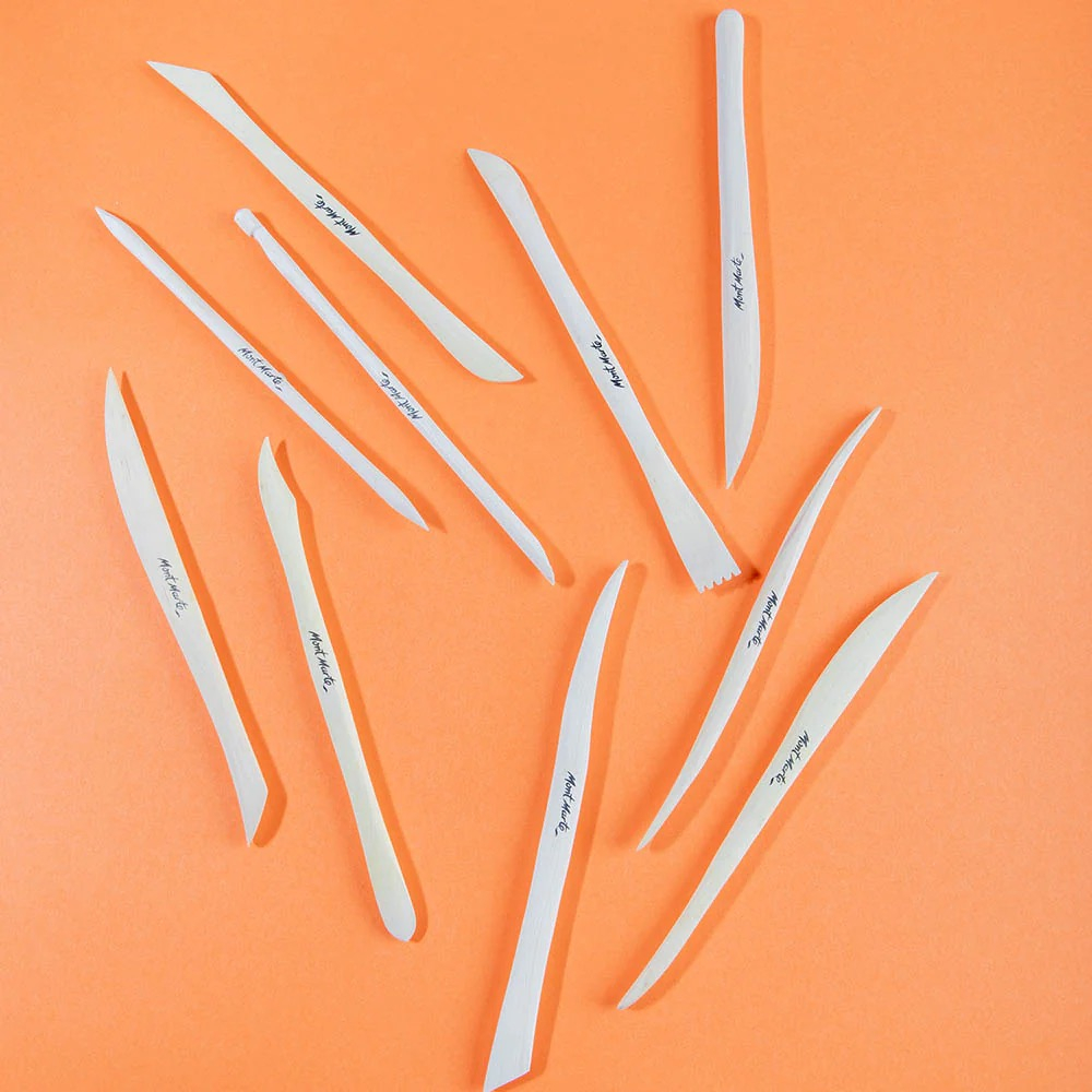 Set de 10 ebosoare ideale pentru pasionatii de ceramica/modelaj. Acestea sunt realizate din lemn si au 20 de capete diferite cu care se poate finisa, taia, indeparta sau textura pasta de modelaj. Se pot utiliza impreuna cu pasta de modelaj/argila, lut sau polymeric clay/Fimo. Se curata cu apa dupa utilizare.