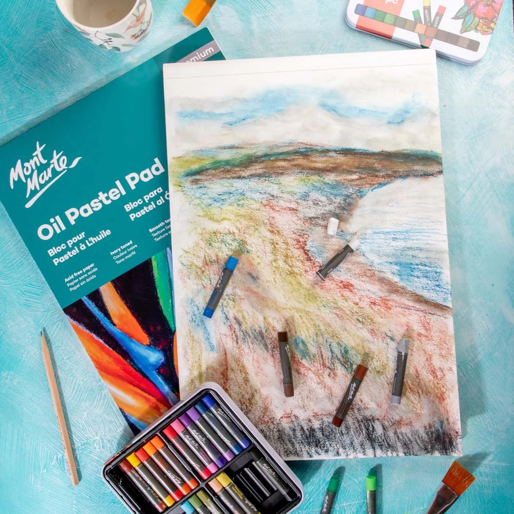 Blocul pentru pasteluri în ulei Mont Marte, format A3, este conceput pentru lucrări ample, cu straturi bogate și efecte de textură 🎨🖍️. Suprafața specială oferă aderență bună pigmentului și permite aplicarea repetată fără deteriorarea rapidă a hârtiei.