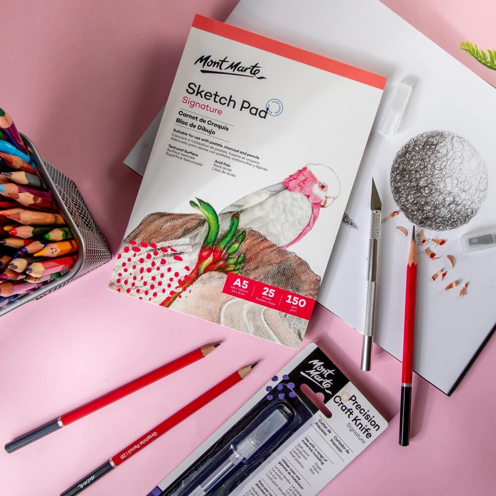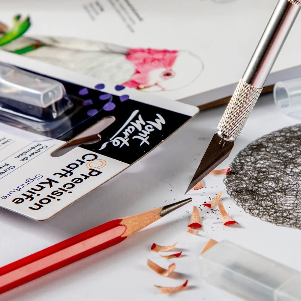 Cutterul de precizie Mont Marte este conceput pentru lucrări detaliate de modelare, tăiere și decupaj în proiecte creative. Lama ascuțită permite tăieri exacte și controlate, fiind ideal pentru hârtie, carton, lut cu uscare la aer sau pastă modelatoare 🎨✂️.