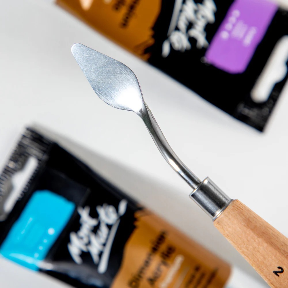 Cuțitul de pictură nr. 2 Mont Marte este potrivit pentru aplicarea controlată a culorii și pentru realizarea efectelor de textură în tehnica impasto. Lama metalică flexibilă permite distribuirea uniformă a vopselei și modelarea detaliilor cu precizie 🎨🔪.