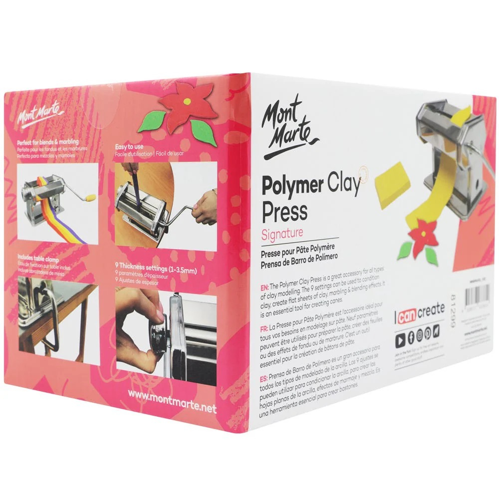 Descoperă un accesoriu esențial pentru modelajul creativ! Presa pentru lut polimeric Mont Marte te ajută să obții foi subțiri, uniforme și efecte spectaculoase de marmorat, amestec sau degradé. Perfectă pentru artiști, pasionați de bijuterii handmade și modelaj în lut polimeric.