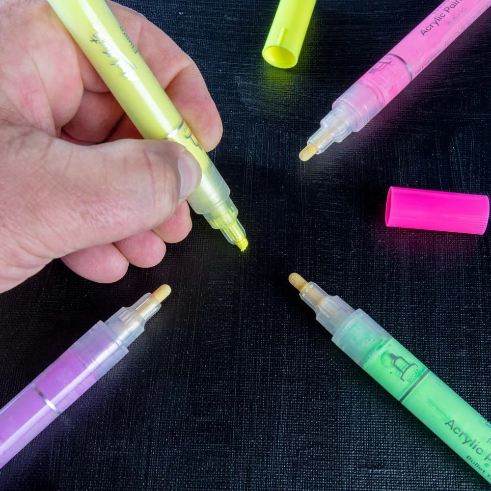 🖌️ Set de 6 markere acrilice fluorescente cu vârf gros