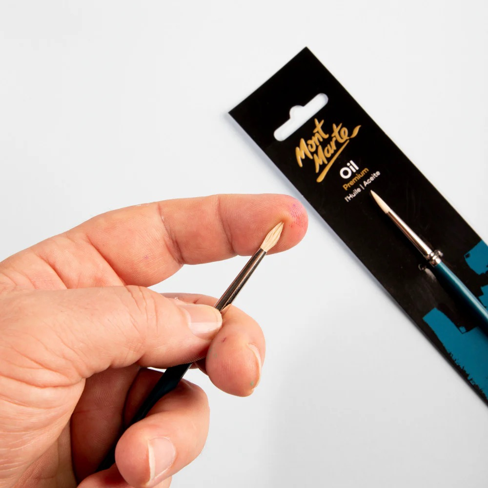🖌️ Pensula Artist Taklon Rotundă 0 Mont Marte MPB0080 este concepută pentru lucrări care necesită precizie maximă. Forma rotundă și fină permite trasarea liniilor delicate, detalii subtile și accente decorative în pictură.