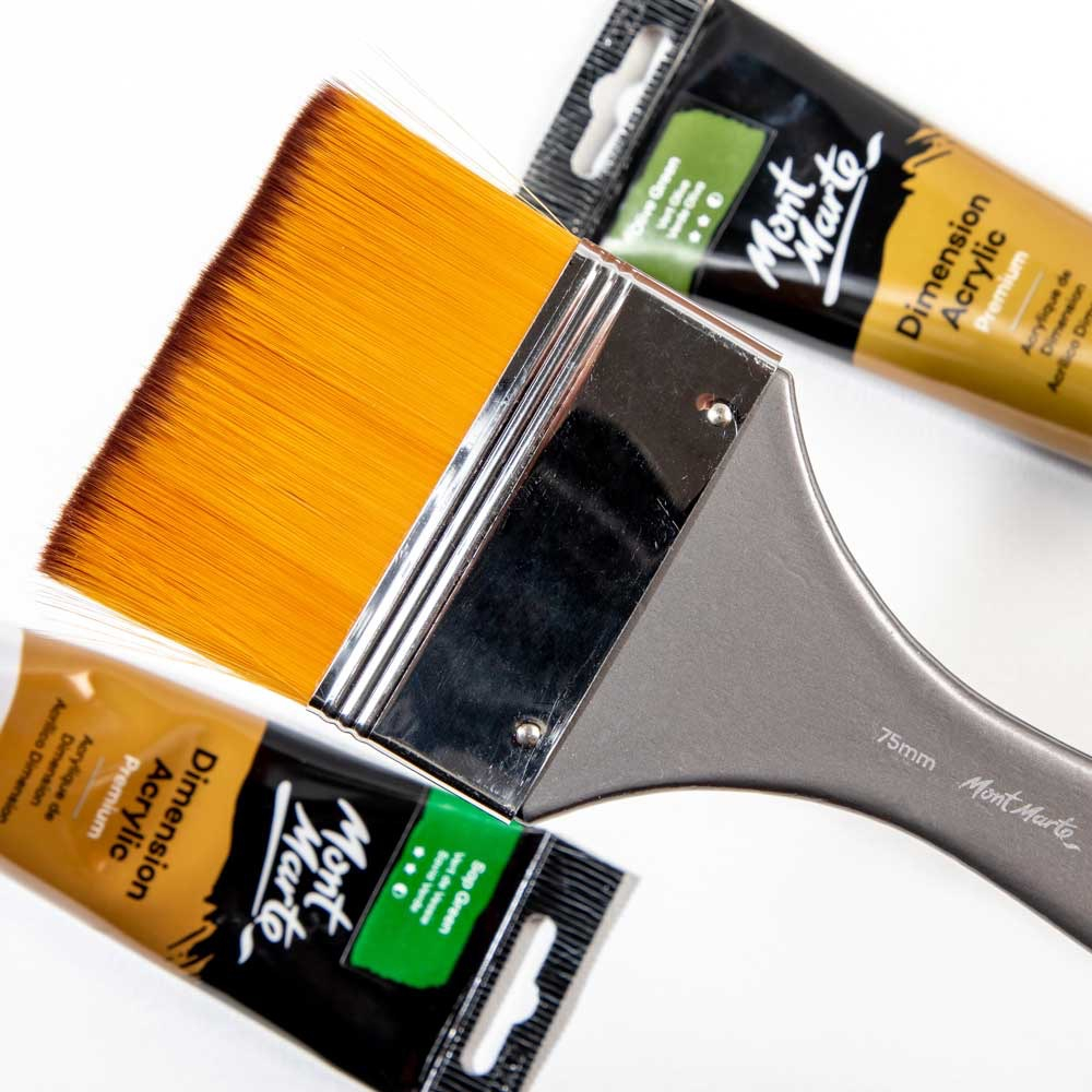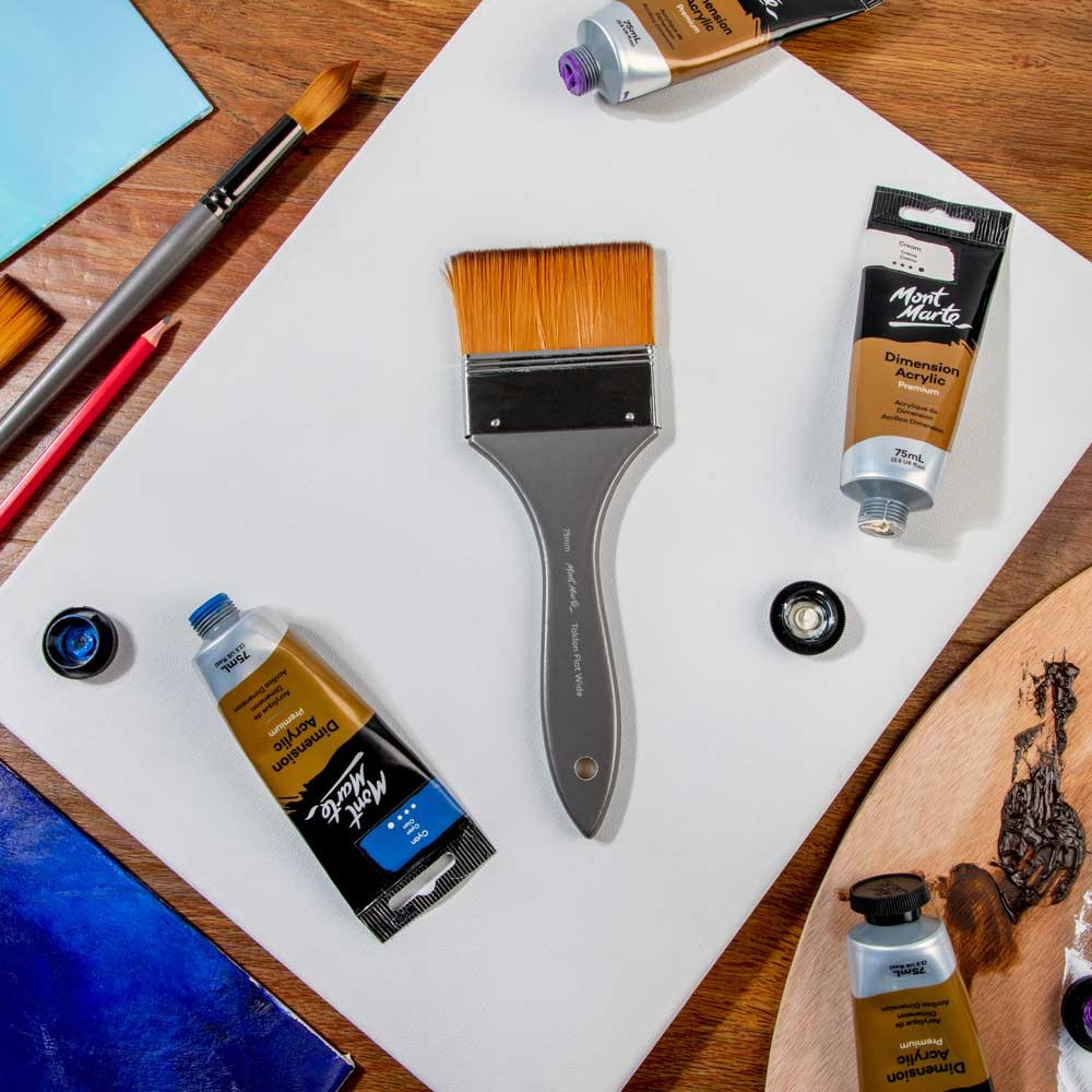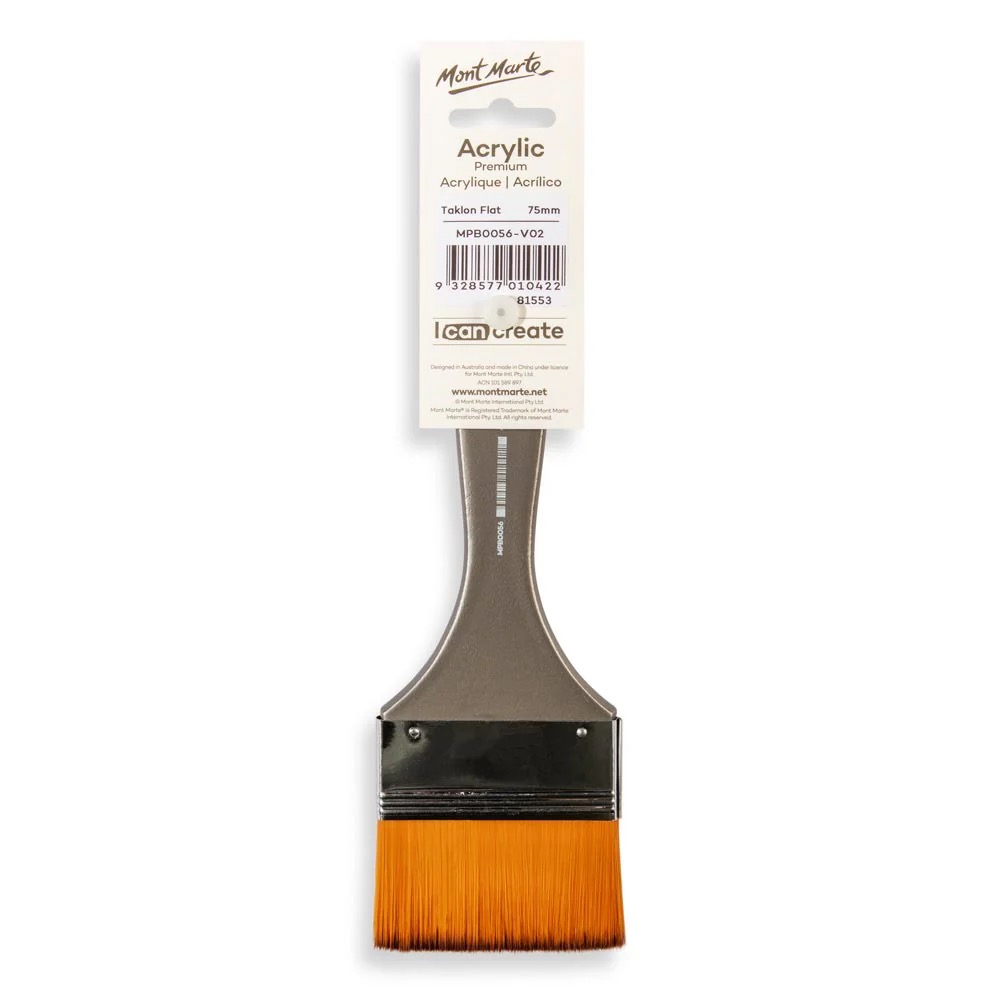 🖌️ Pensula Artist Taklon plată lată 75mm Mont Marte MPB0056 este ideală pentru aplicarea eficientă a vopselelor pe suprafețe extinse, realizarea fundalurilor și a tușelor uniforme. Forma plată și lată permite acoperirea rapidă și controlată a zonelor mari, fiind potrivită pentru pictură decorativă și proiecte creative de dimensiuni mari.