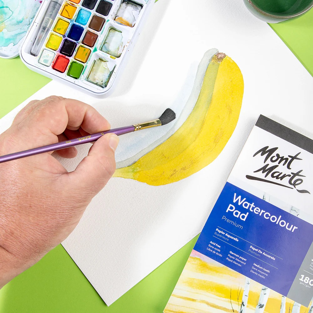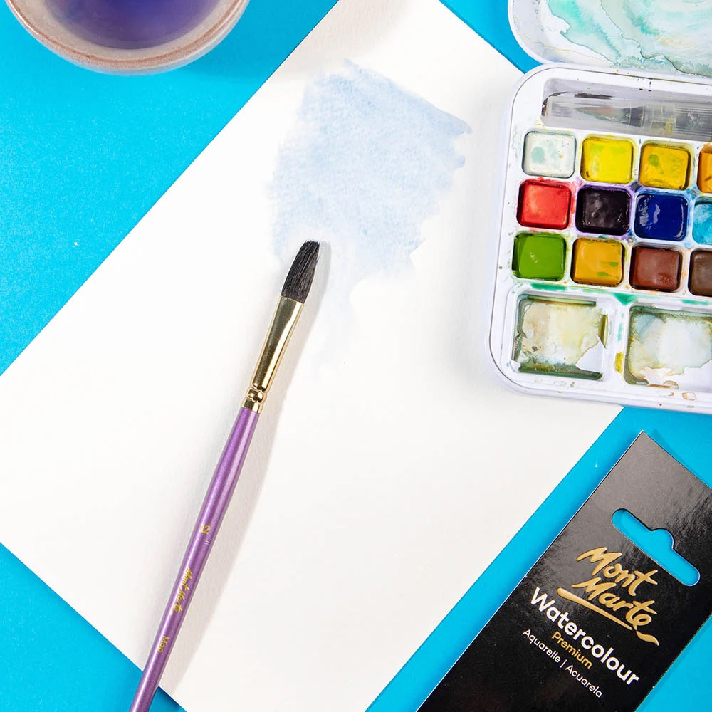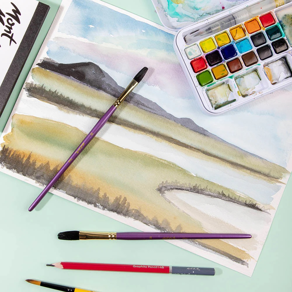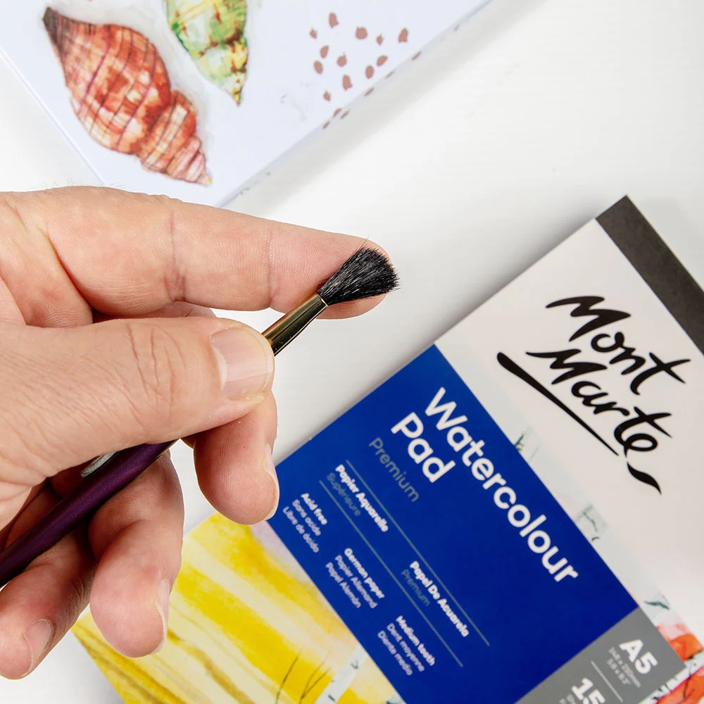 🖌️ Pensula pentru acuarelă Mont Marte Model 12 Mont Marte MPB0085 este concepută special pentru pictura cu acuarele, oferind precizie și tușe uniforme. Forma pensulei permite aplicarea fină a culorii și detalii subtile în lucrările artistice.