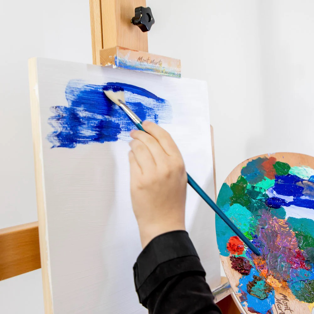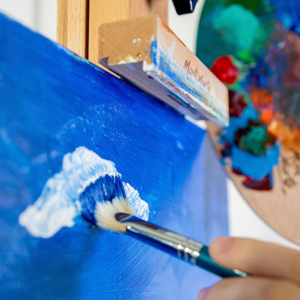 🖌️ Pensula Mont Marte Evantai 16 Mont Marte MPB0173 este concepută pentru realizarea unor efecte speciale, linii fine și texturi uniforme. Forma evantai permite dispersia culorii într-un mod controlat, fiind ideală pentru frunze, părul personajelor sau accente decorative pe suprafețe mai mari.