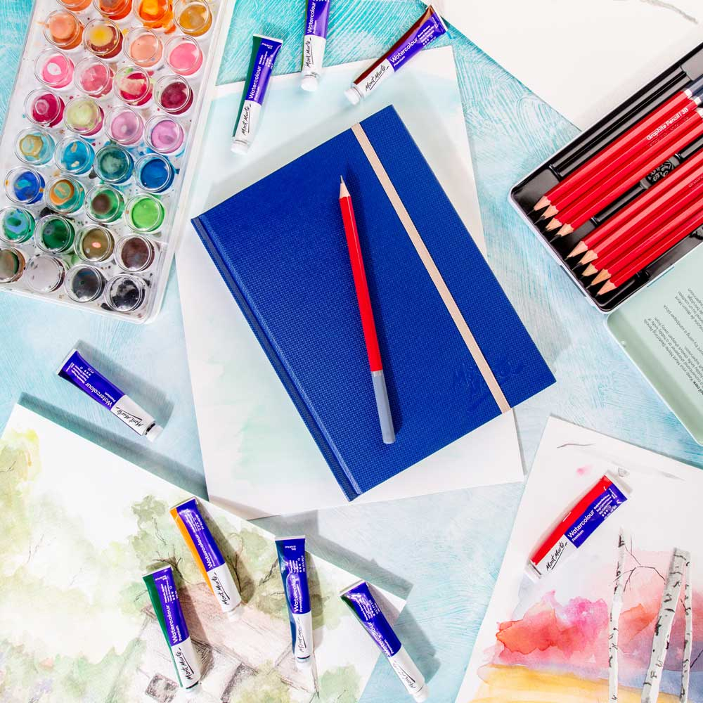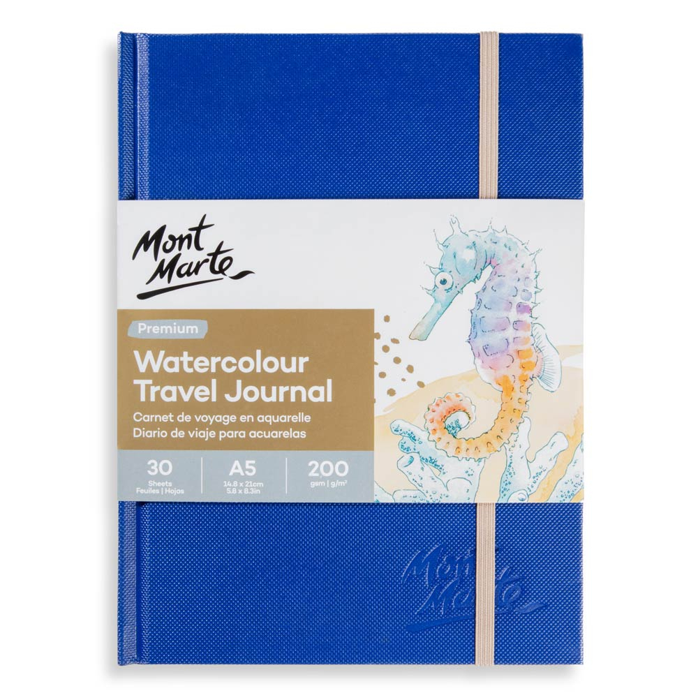 Jurnalul de călătorie pentru acuarelă Mont Marte, format A5, este conceput pentru schițe și picturi realizate în deplasare.