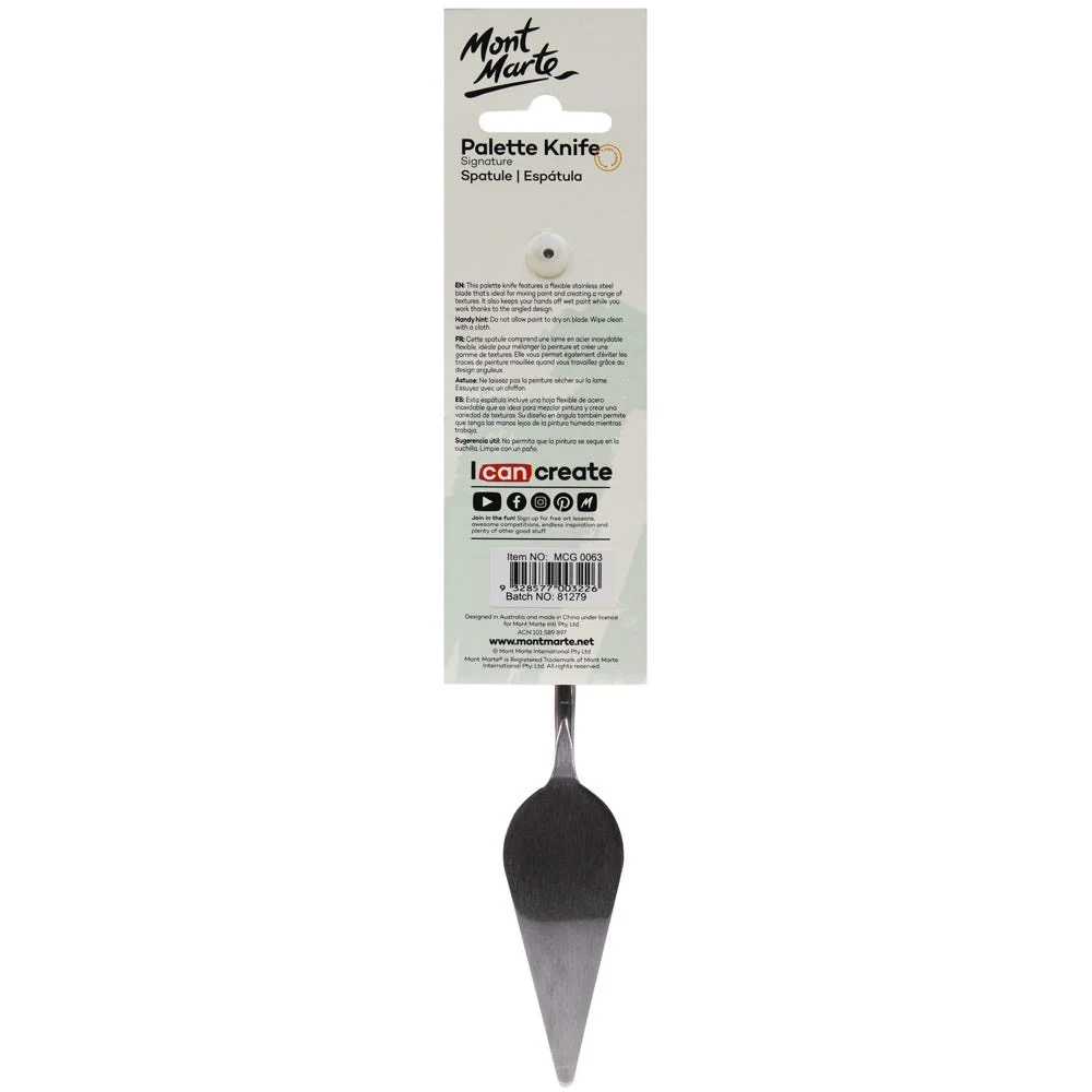 Cuțitul de pictură nr. 15 Mont Marte este ideal pentru aplicarea vopselei pe suprafețe foarte mari și pentru realizarea de texturi dramatice și straturi groase în tehnica impasto 🎨🔪. Lama metalică flexibilă permite întinderea uniformă a culorii și modelarea efectelor artistice cu precizie și fluiditate.