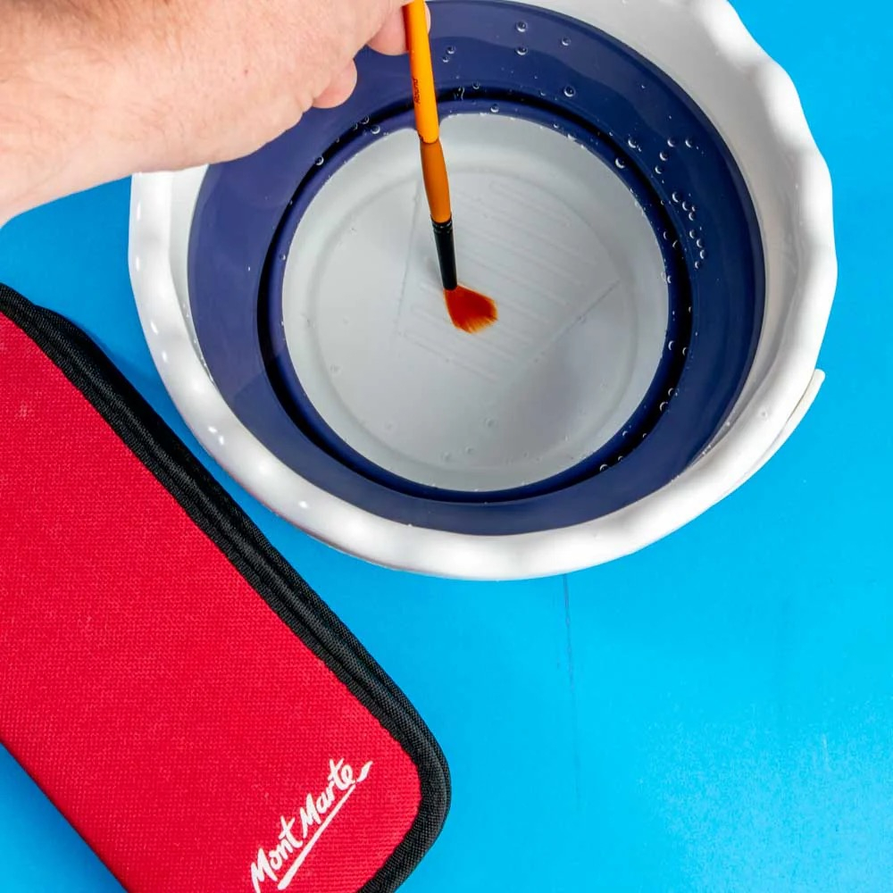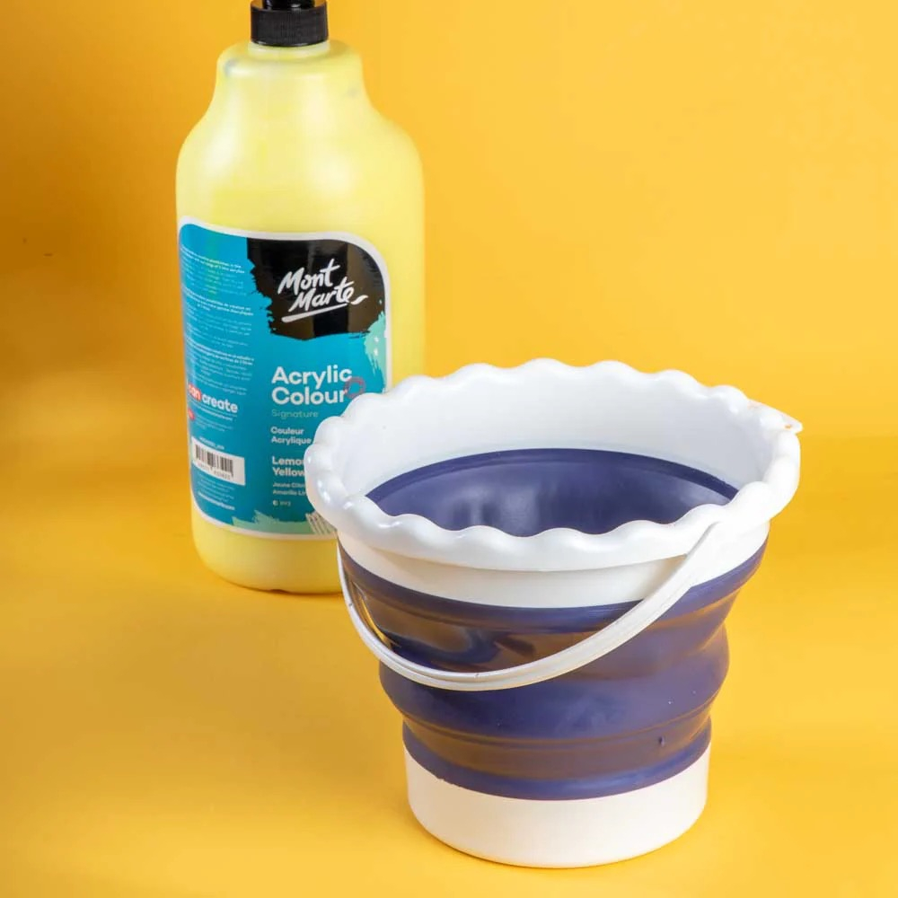 Recipientul pliabil Mont Marte este conceput pentru curățarea eficientă a pensulelor în timpul lucrului, oferind o soluție practică atât în studio, cât și în deplasare. Designul pliabil permite extinderea rapidă în timpul utilizării și plierea compactă după folosire, ceea ce îl face ușor de transportat și depozitat. Interiorul este gândit pentru curățare eficientă, având zone texturate și suporturi pentru pensule, astfel încât perii să fie curățați mai bine și protejați. Este realizat din material ușor și rezistent, potrivit pentru utilizare frecventă și compatibil inclusiv cu solvenți mai puternici.